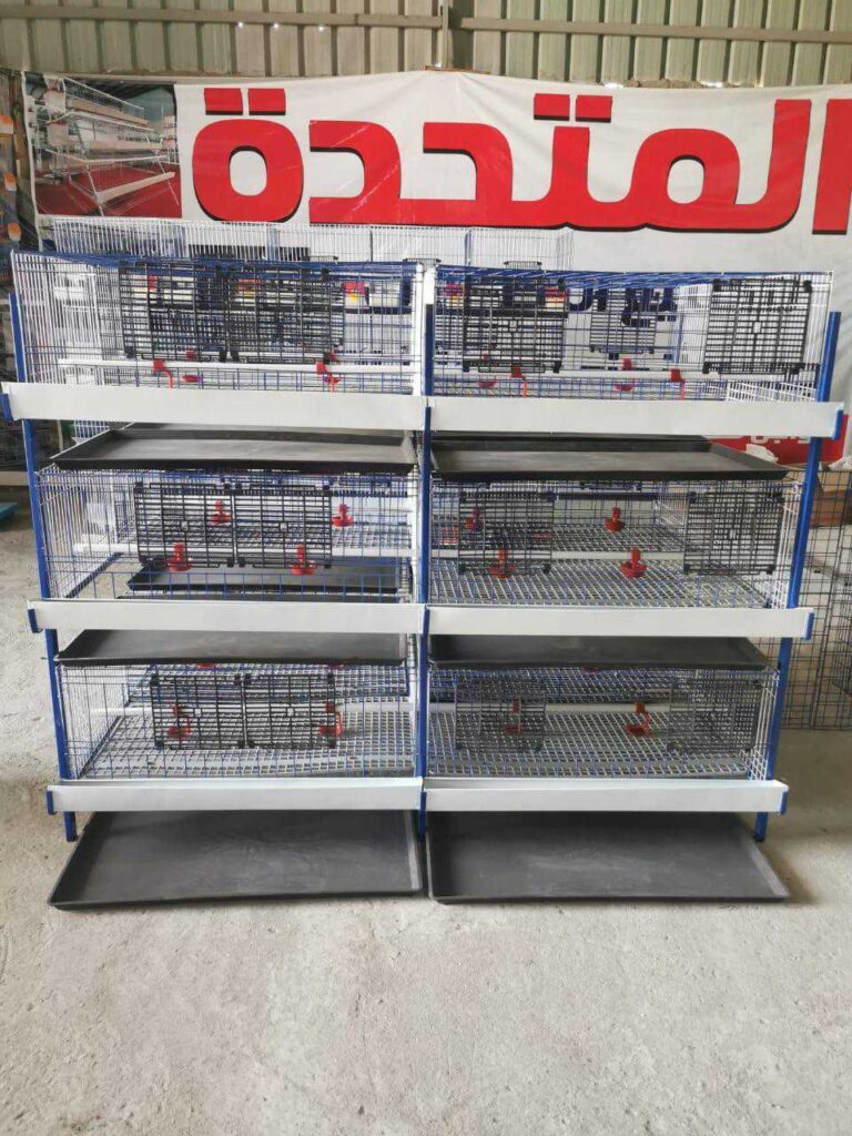 بطاريات مخصصة لتربية السمان بتصميم عملي ومتين يوفر راحة الطيور وسهولة الخدمة، مزودة بمقياس شبك مناسب لحجم السمان للحفاظ على النظافة وتقليل الهدر.